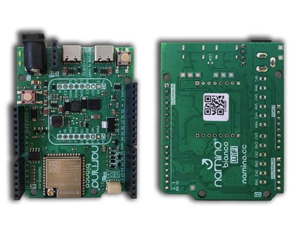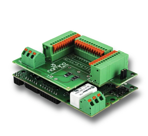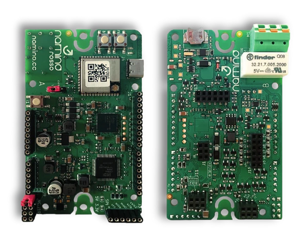 Namino è un sistema di schede elettroniche programmabili basato su ESP32 e offre Input/Output integrati + Wi-Fi e Bluetooth. Le schede presentano una doppia interfaccia: da un lato sono compatibili con le shields Arduino UNO e dall’altro pronte per il mondo industriale con morsettiere e relè.